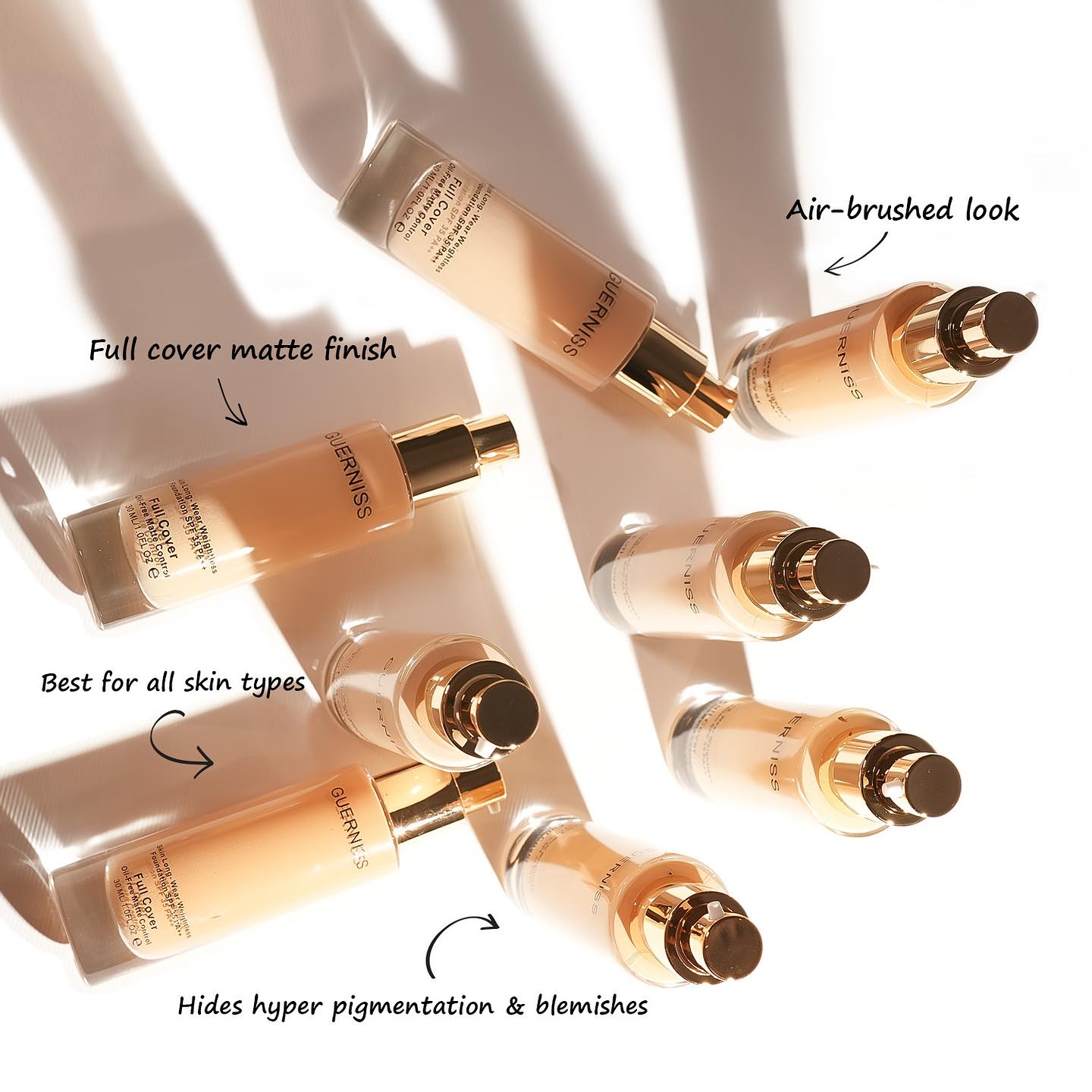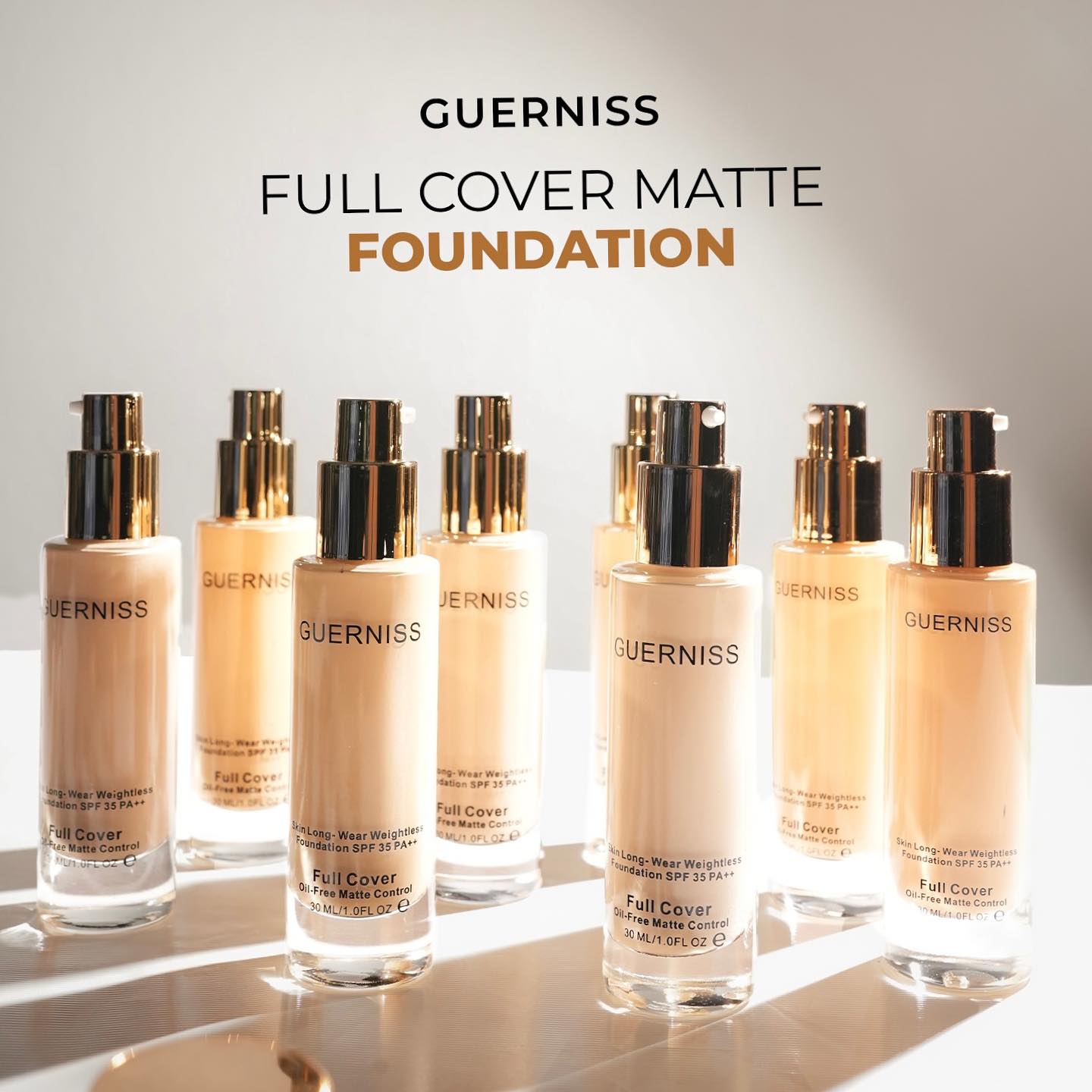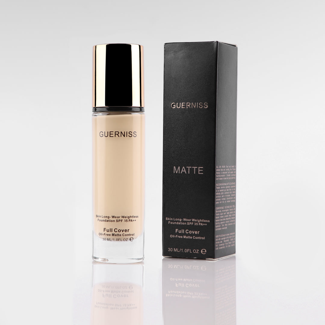 ✨ With its full coverage, matte finish, SPF protection, and nourishing formula, the Guerniss Full Cover Matte Foundation is perfect for achieving a flawless look that lasts all day.