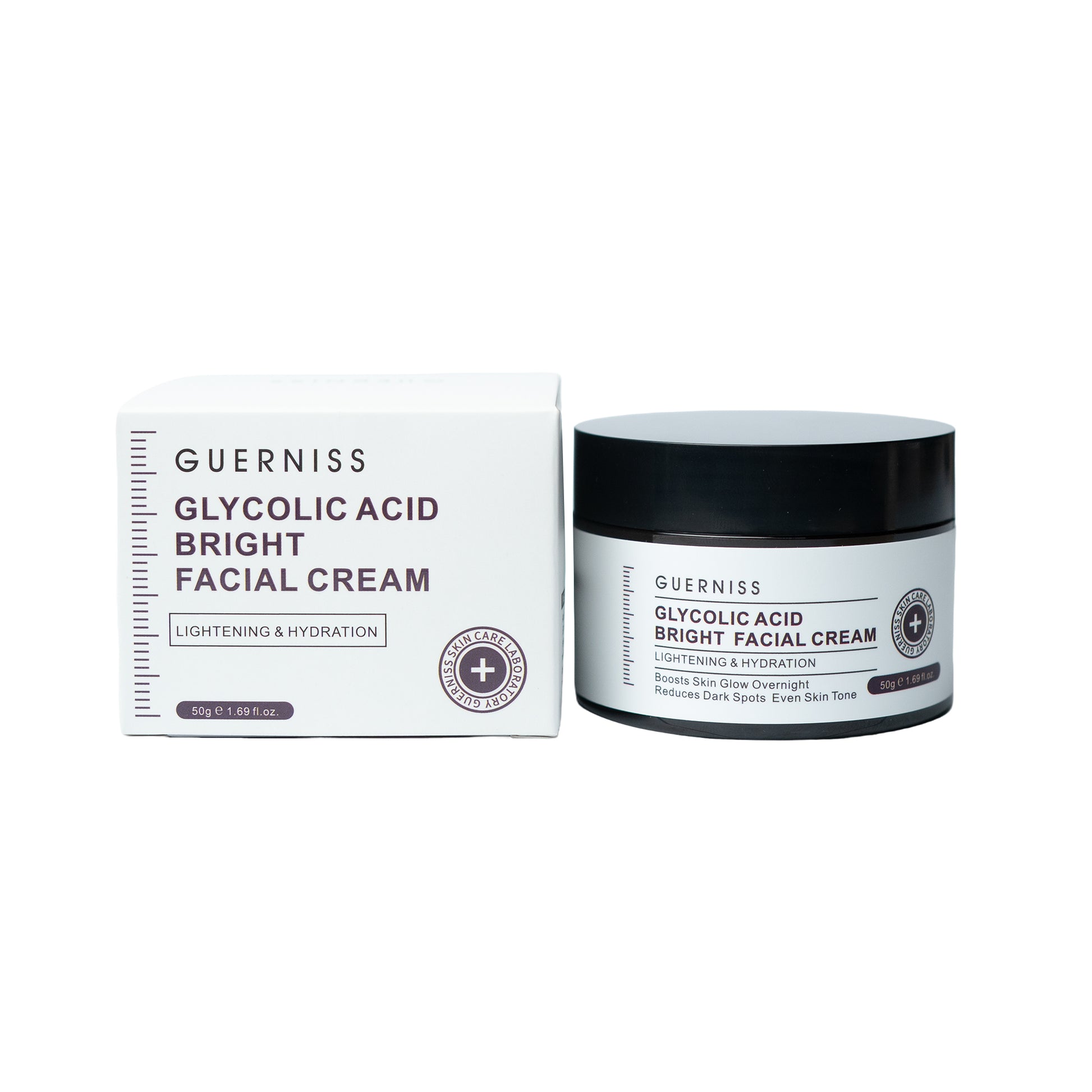 Guerniss Glycolic Acid Bright Facial Cream is specially formulated to restore clarity, brightness, and hydration to tired, dull skin.