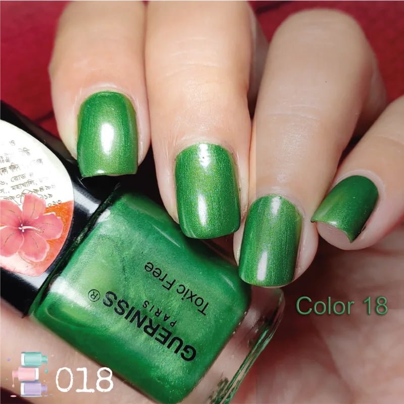 Guerniss Nail Polish 7.5ml is a beautiful nail paint decorative cosmetic that come in a variety of on-trend shades. Its long-lasting nail polish formula makes your fingernails or toenails shiny and glossy. And most importantly the ingredients are totally toxic and cruelty free. In fact, Our budget-friendly nail gift set can be handed out on different occasions to all your friends, family, or dearest ones.