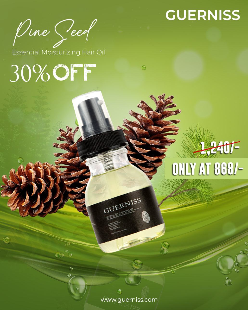 The Guerniss Pine Seed Hair Oil is enriched with natural pine seed extract and essential nutrients that work to revive dull, weak, and damaged hair. Lightweight yet powerful, this oil penetrates deep into the scalp, stimulating blood circulation, strengthening hair follicles, and promoting natural hair growth. Its antioxidant and vitamin-rich formula helps protect against environmental damage, reduces frizz, and keeps hair soft, shiny, and manageable.